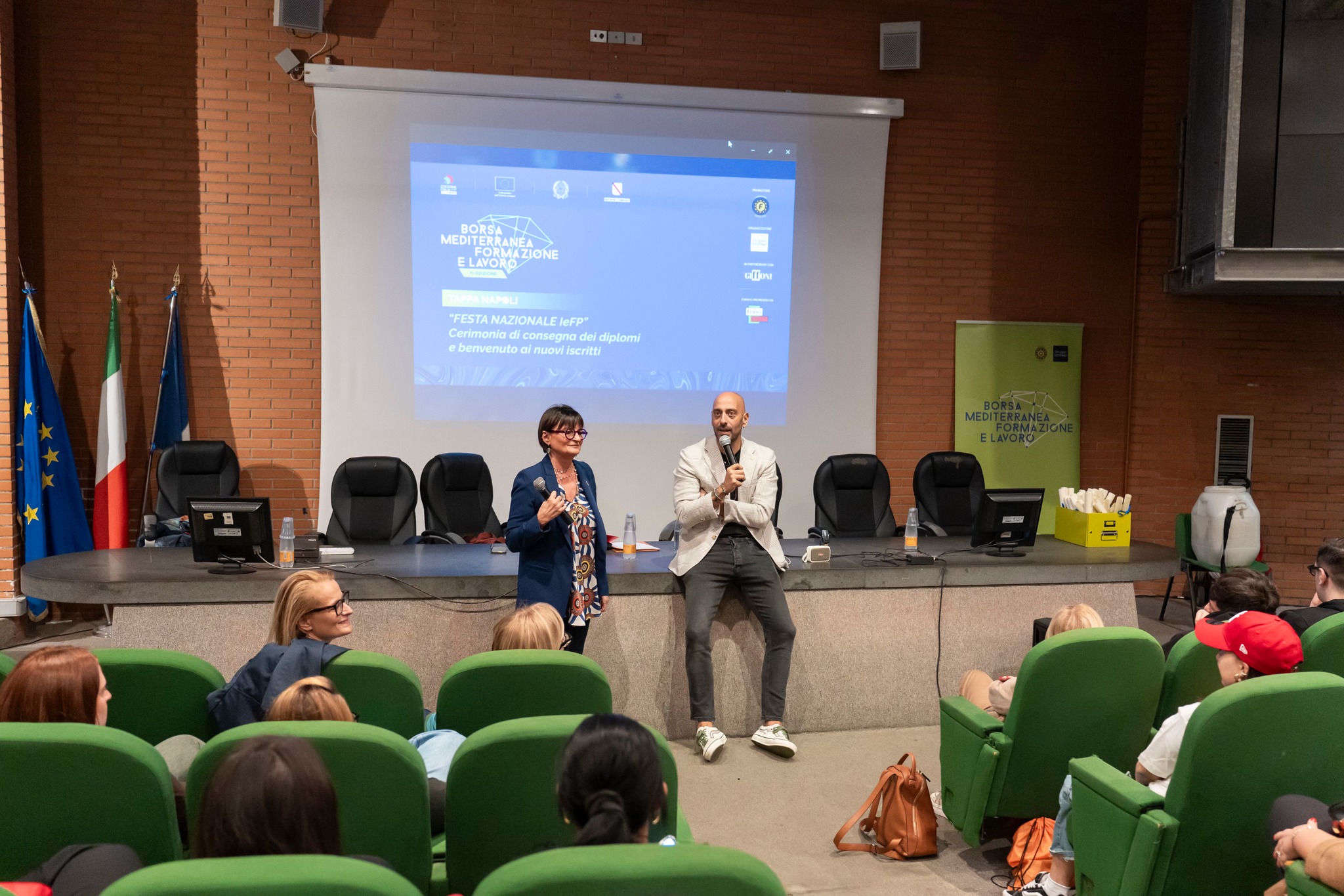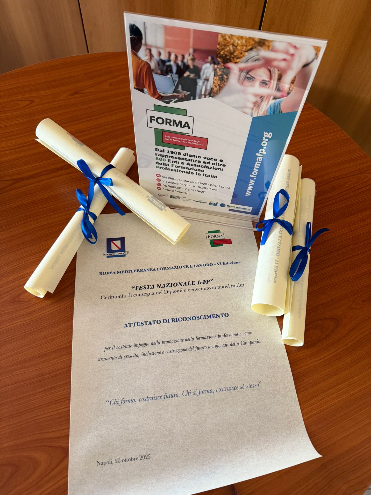 Si è svolta ieri lunedi 20 ottobre 2025, a Napoli, presso il Centro Direzionale, la grande festa della Istruzione e Formazione Professionale promossa dalla Regione Campania e da FORMA NAZIONALE per consegnare i diplomi di qualifica degli allievi e delle allieve che hanno concluso il triennio, dare il benvenuto alle matricole e fare il punto sulla programmazione della IeFP nella Regione! Si tratta di un evento promosso dalla Regione su una intuizione della Dirigente Antonella Ciamarella. Due i momenti salienti al centro della festa: uno istituzionale che si è svolto in plenaria presso l’Auditorium e uno espositivo dove gli Enti della formazione professionale hanno esposto manufatti e buone pratiche.