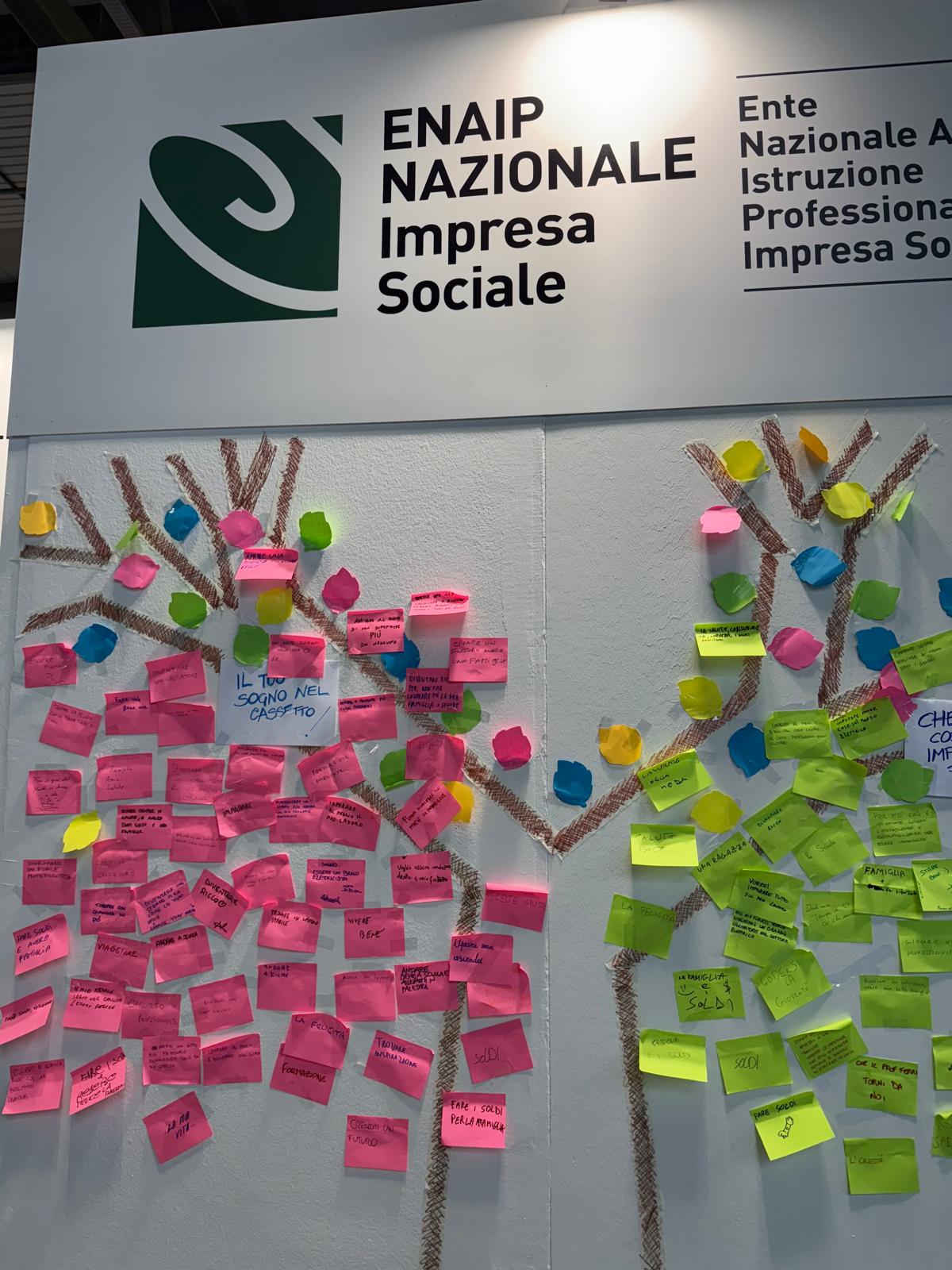 Un elemento particolarmente suggestivo è stato l’Albero delle Idee di ENAIP: durante la fiera, i nostri allievi e le nostre allieve hanno appeso pensieri, sogni nel cassetto e valori da preservare.